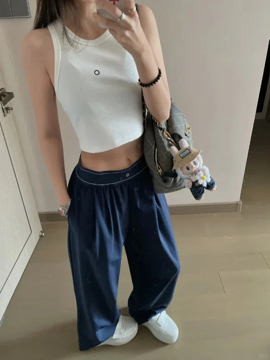 Yoga Sports Straight Leg Pants Women Thin Casual Fashion Solid Elastic Waist Quick Drying Sweatpants Loose Baggy Trousers Women