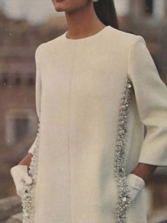 Womens Dresses Evening Dresses Fashion Casual Long Sleeves Loose Sequined Solid Color Elegant Round-neck Mini Dresses