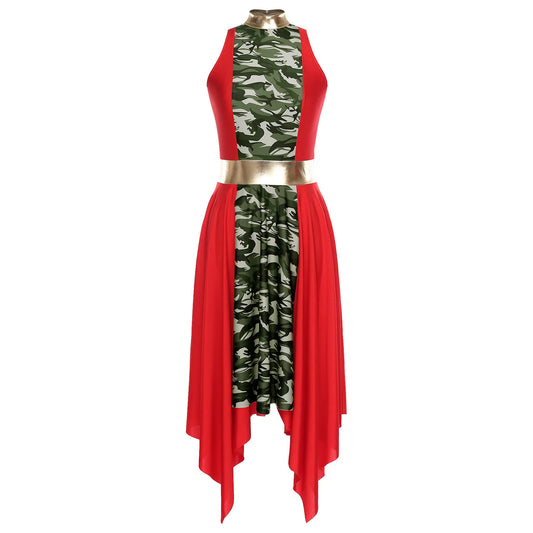 Women Modern Lyrical Dance Dress Church Choir Worship Praise Liturgical Costume Sleeveless Print Irregular Hem Gown Dancewear