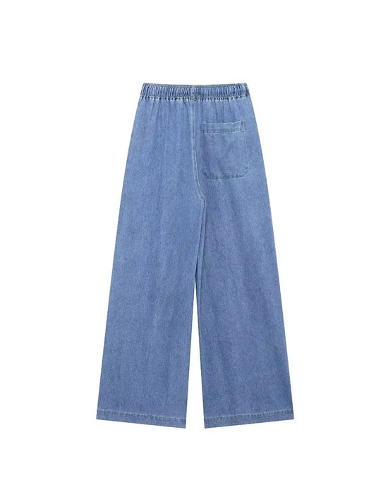 2024 Autumn Denim Pant For Women Loose High Waist Jeans Female Fashion Drawstring Elastic Waist Wide Leg Pants