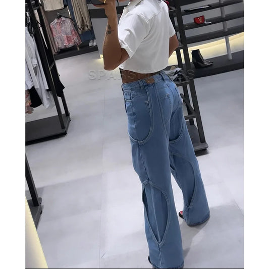 Women's Unique High Waist Vintage Streetwear Baggy Patchwork Design Jeans Casual Daily Slimming Pants High Quality Trousers