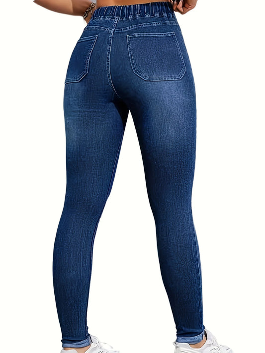 Women's high-waisted skinny jeans with drawstring waist, elastic cuffs, and slimming fit