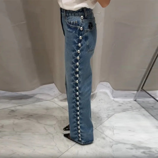Women's Fashion Punk Washing Denim Pant Vintage Metal Straight Wide Leg Long Jeans 2025 New Lady Y2k Fashion Denim Trousers