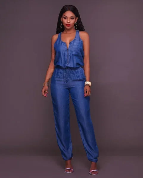 Denim Playsuit Sexy Women Elegant Blue Summer Casual Jeans Jumpsuit Romper