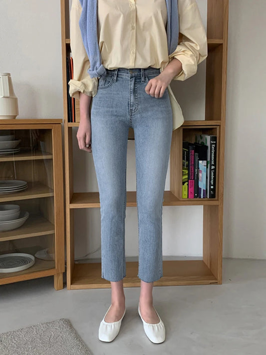Women High Waist Jeans Spring Summer Skinny Casual Office Lady Slim Lifting Butt Denim Pencil Pants Female Elastic Trousers
