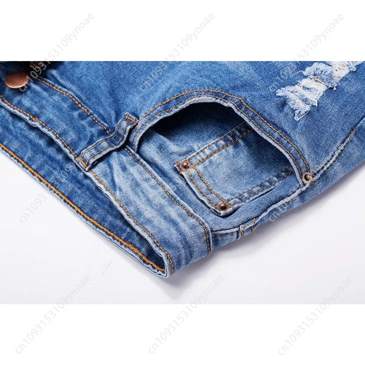 Retro Ripped Jeans Sexy Women Mid Rise Pants Hip Hugging Tight Bermuda Shorts Y2k Hip Hop Trousers Street Fashion Pant