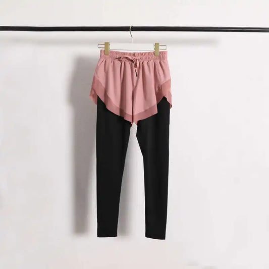 Stretch Autumn Sports Pants Women Two Pieces Fitness Yoga Pants and Shorts With Inner Phone Pocket 2 in 1 Yoga Pants
