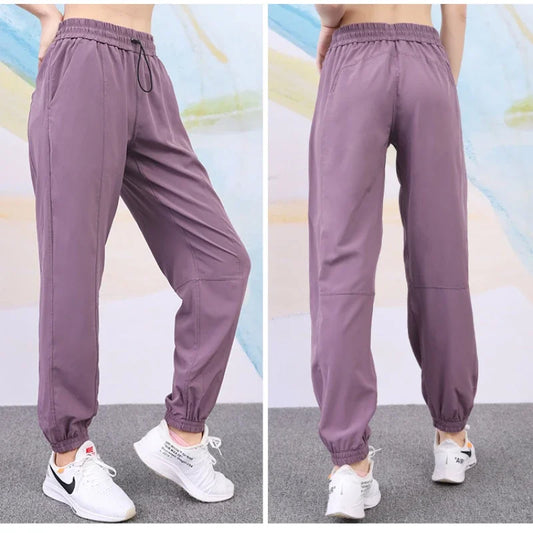Women Loose Yoga Pants Running Sports Training Trousers with Pocket Casual Quick Dry Fitness Pants Thin for Spring Summer