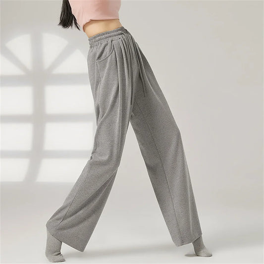 Women Loose Yoga Pants Autumn Soft Drawstring High Waist Modern Dance Sport Wide Leg Clothes Classical Dancing Training Trousers