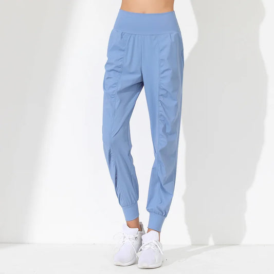 Woman Yoga Pants Hem Bound Running Fitness Loose Slim Quick-Dry Yoga Pants Pleated Capris Pockets Jogging Pants Sports pants