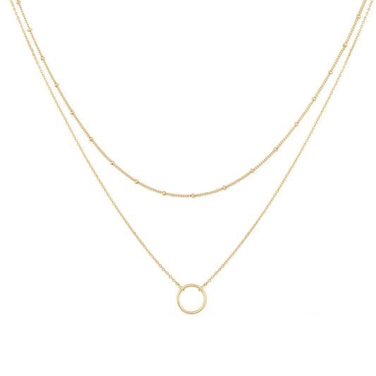 Stainless steel necklace for women Double necklace Vintage Bohemian round pendant necklace jewelry