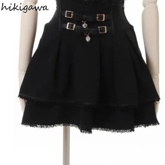 Women Summer Black Skirt Korean Lace Up Skinny Short Skirts High Waist Streetwear Gothic Y2K Bandage Female Skirt New