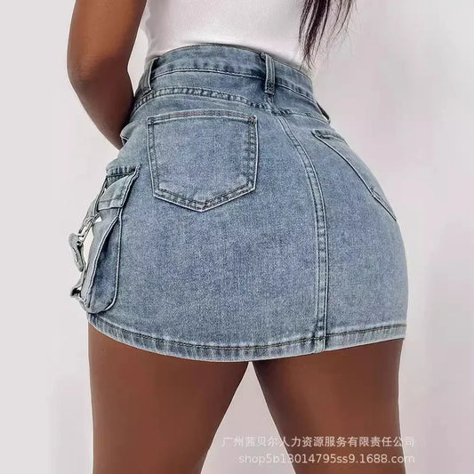 Denim Skirt Women Short Jeans Y2k Cargo Skirt Hip Wrap Elegant Splice Skirts Casual Pocket Button Streetwear Sexy Summer 2024