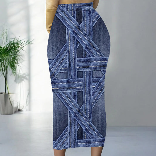 Womens Long Cotton Patchwork Stretch Denim Skirt a Line Flared Jean Maxi Skirt