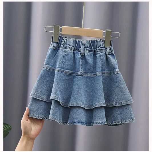 Girls Jean Skirt 2024 Summer New Casual Fashion Solid Color Lightweight Skirt Loose and Comfortable Childrens Clothing