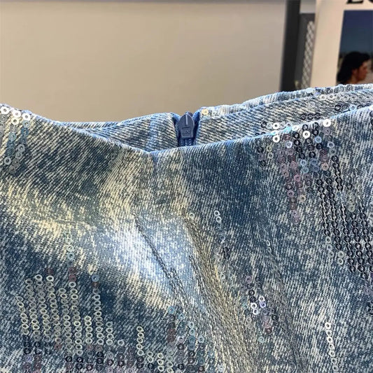 Blue Sequin Denim Skirt Jupe Femme Short Skirts for Women Korean Fashion Faldas Mujer Moda Spring Summer Y2k 2025 Casual High