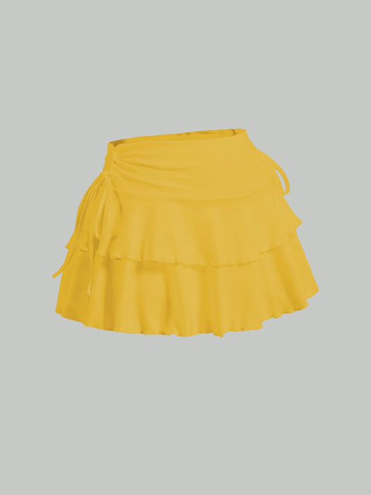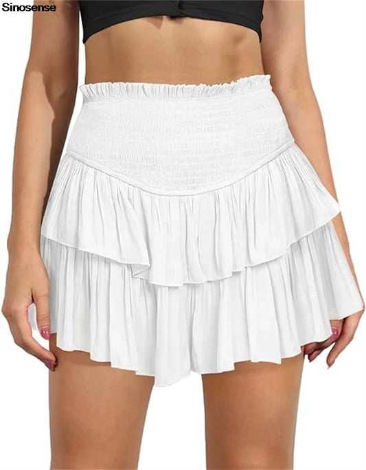 Women's High Waist Ruffle Pleated Mini Skirts Solid Lined Layered Flared Flowy Casual Swing Summer Boho Beach Mini Short Skirt
