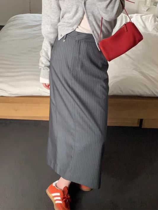 Chic High Waist Straight Leg Long Skirt Women's Spring Vintage ket Color Blo Striped f Body Skirts Faionable Slimming