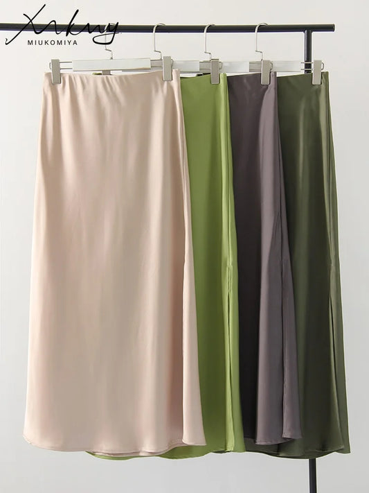 2025 Satin Long Skirts for Women Draped High Waist Midi Skirt Woman Summer Straight Women's Skirt Holiday Beach Women Skirt