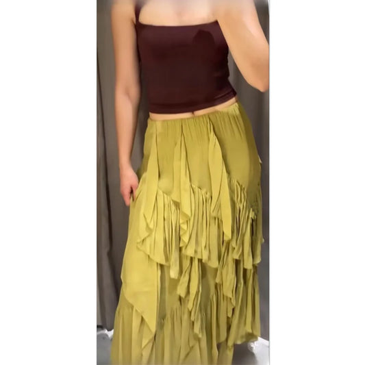 Skirts Summer Women's 2025 New Chic Women's Elegant Cascading Holiday Skirts Street Leisure Youth Fashion Long Skirts