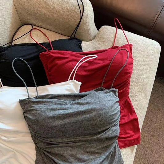 Sleeveless Tees Tank Tops For Women Camisole Vest Cropped Top Slim Fit Solid Color Spaghetti Strap Built In Bra Women Clothes