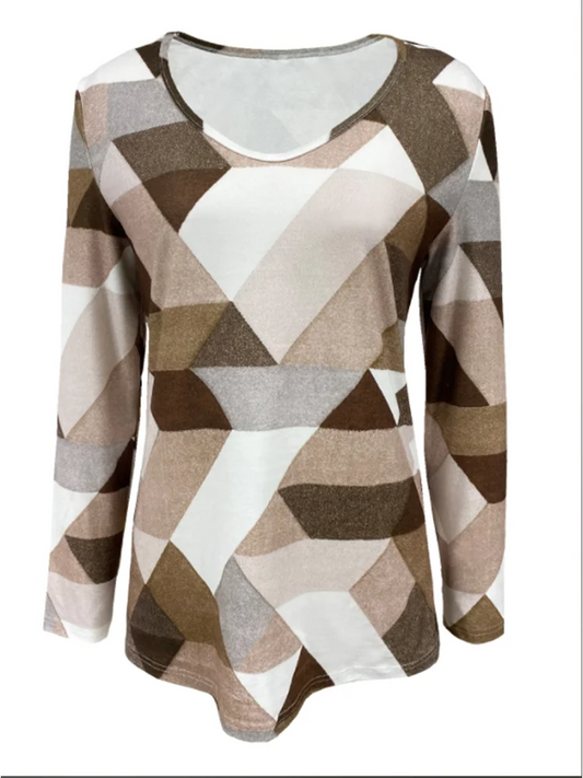 Women Elegant Minimalist Spring Top 2024 New Geometry V-Neck Long Sleeve Blouse Fashionable T-Shirt