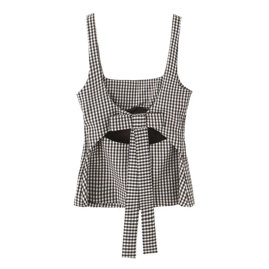 Tops For Women Bow Embellished Small Plaid Top 2025 Summer Camisole Sleeveless Top Woman Tops Women's Tank Top