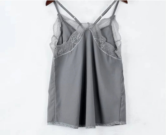 Women Tops Elegant Tank Top Tube Top Silk Satin Camisole Plain Strappy Vest Tops Sleeveless Blouse French Tuning Delicate Lace