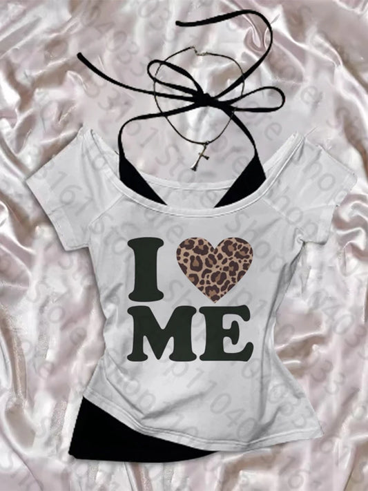 Women's Aesthetic Tops For Women Crop Top 2000s Tops With Suspenders Gothic Clothes Vintage Harajuku Grunge I LOVE ME printing