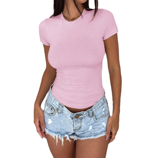 Tops for Women 2025 Spring and Summer Y2K Style Solid Color Slim Fit Short-sleeved T-shirt for Women