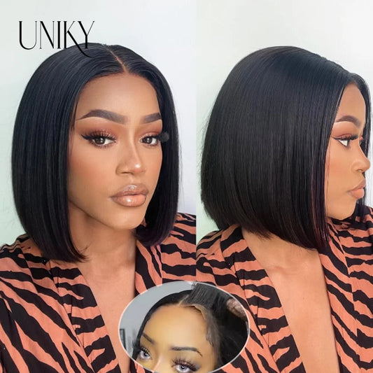 Glueless Wigs Ready To Wear 6x4 Lace Wig Straight Short Bob Wigs Human Hair Glueless Preplucked Human Wigs Ready To Go 180%