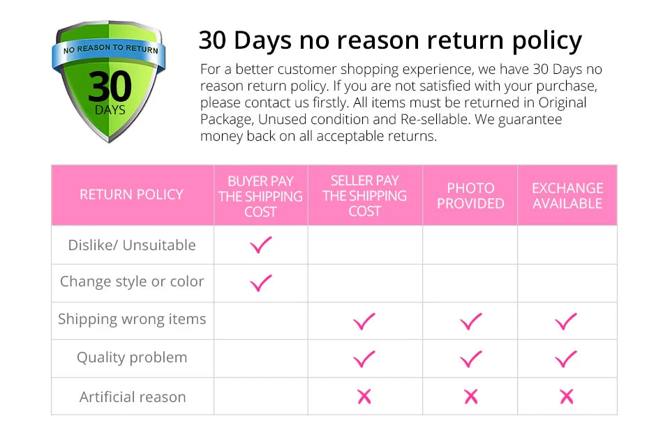 After Sale Guarantee: 30 Days No Reason Refund Or Return Even Used