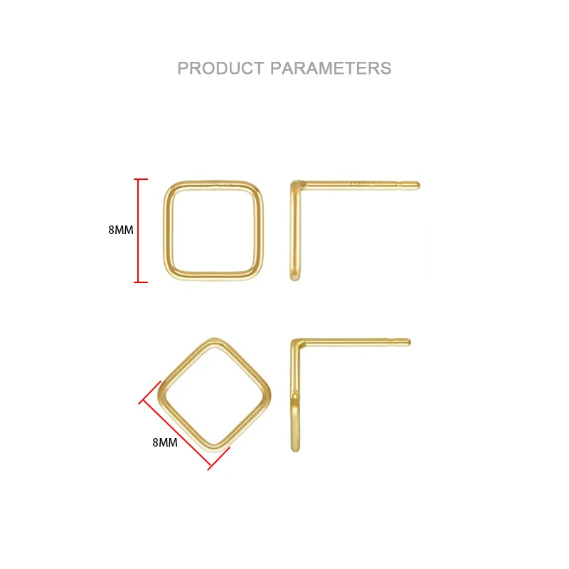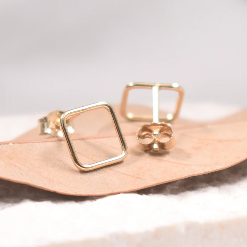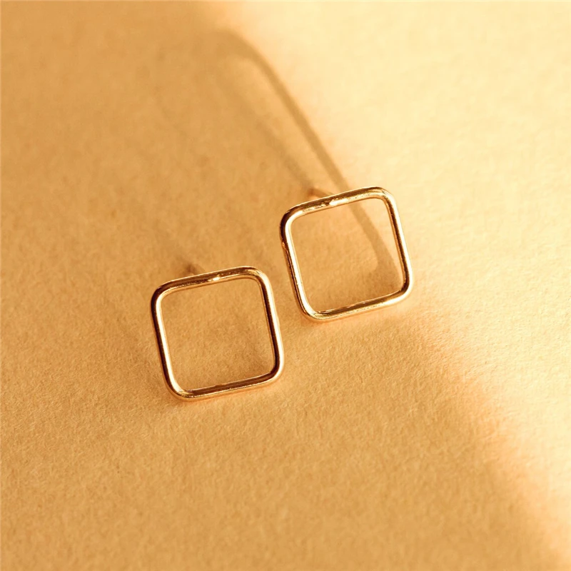 14K Gold Filled 8mm Square Earrings Minimalism Jewelry Gold Filled Stud Earrings Brincos Pendientes Oorbellen Boho Women Earring