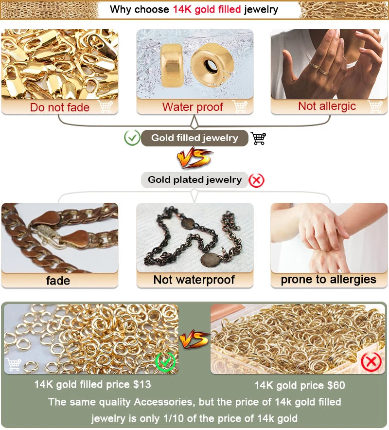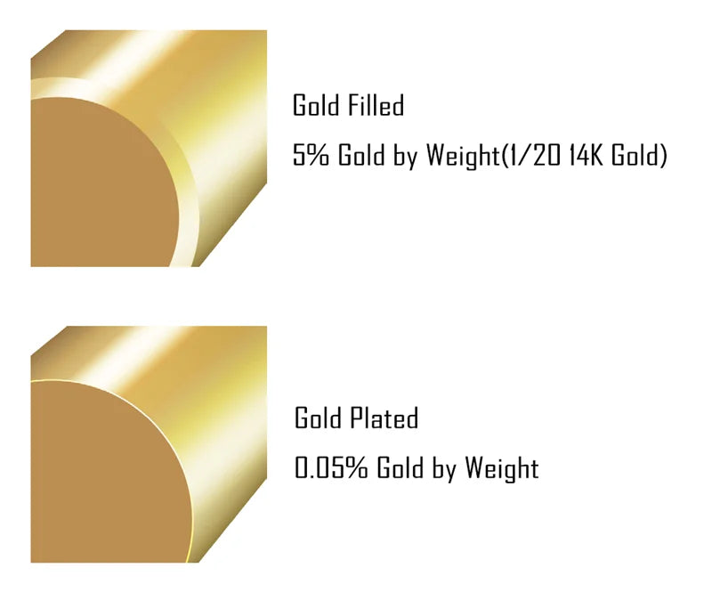 Electroplat-ing is a very thin layer of gold which may tarnish quickly.Gold filled jewelry has inherent value in 5%