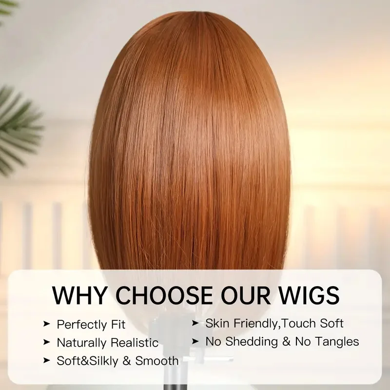 16in Vibrant Orange Straight Synthetic Wig with Bangs -Heat Resistant, Natural Look for Women, Perfect for Daily Wear & Parties
