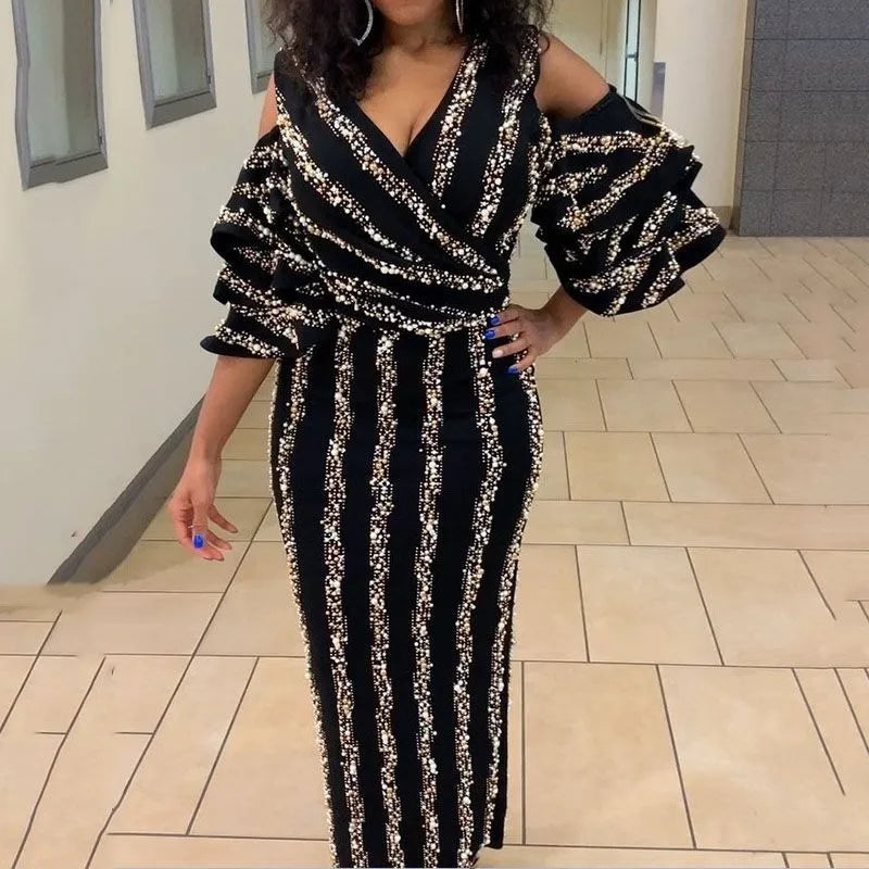 2021 new style women's evening full dress fashion V neck black full dresses for women bridesmaid dress Vestidos