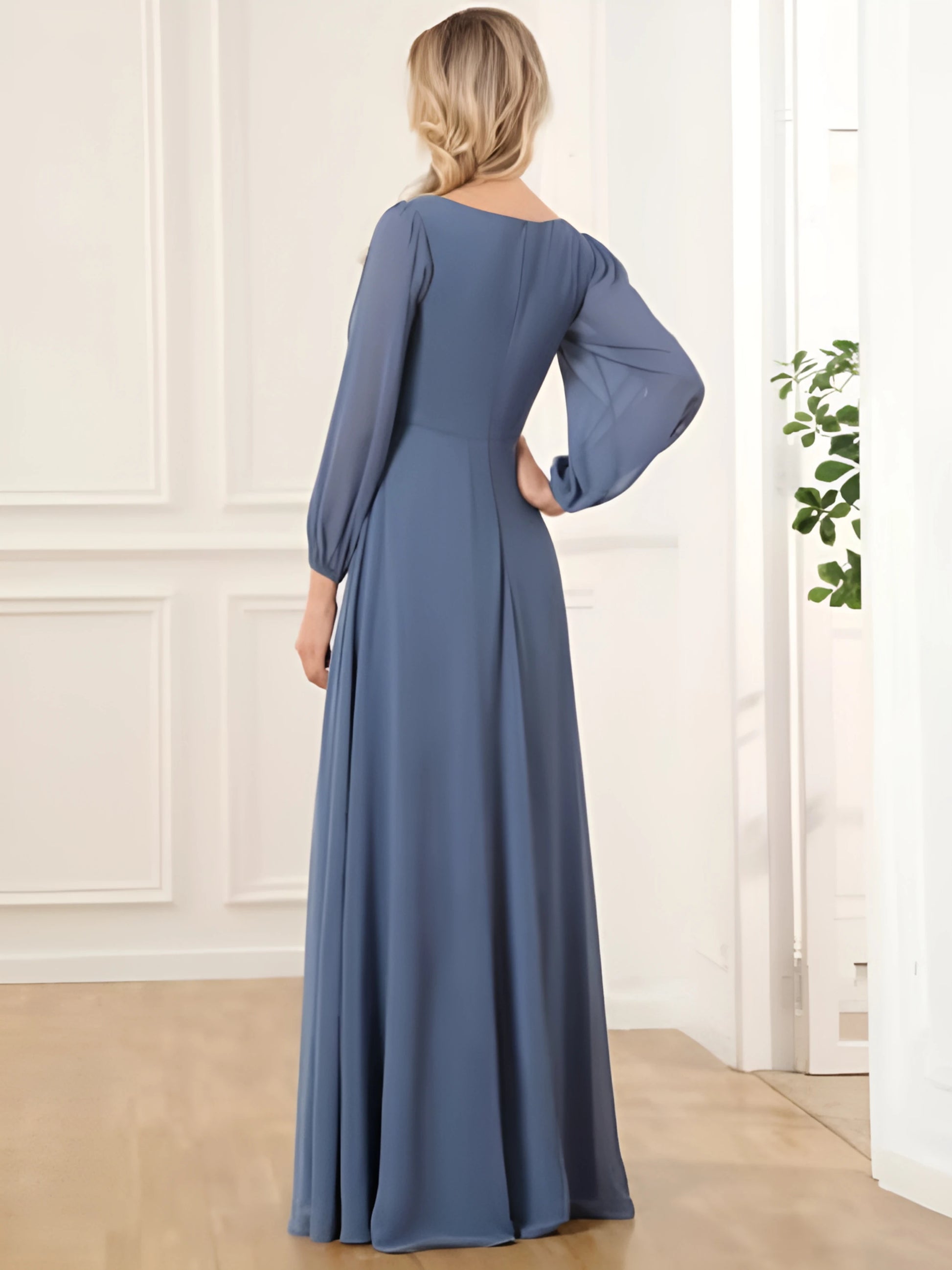 2025 Women Evening Dresses Sexy Deep V-Neck Tulle Full Sleeve Prom Gowns Appliques Empire Pleated A-Line Elegant Bridal Dress