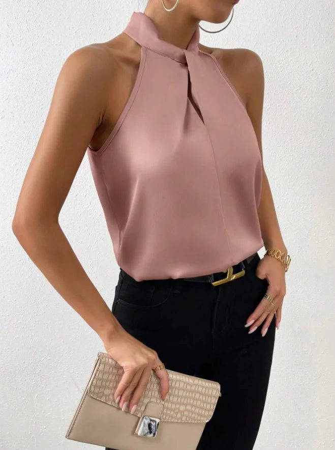 2025 Women's Tanks Top Camis Hanging Neck Strap Design Satin Gloss Loose Sleeveless Blouses Blusas Mujer Moda Black Sexy Shirt