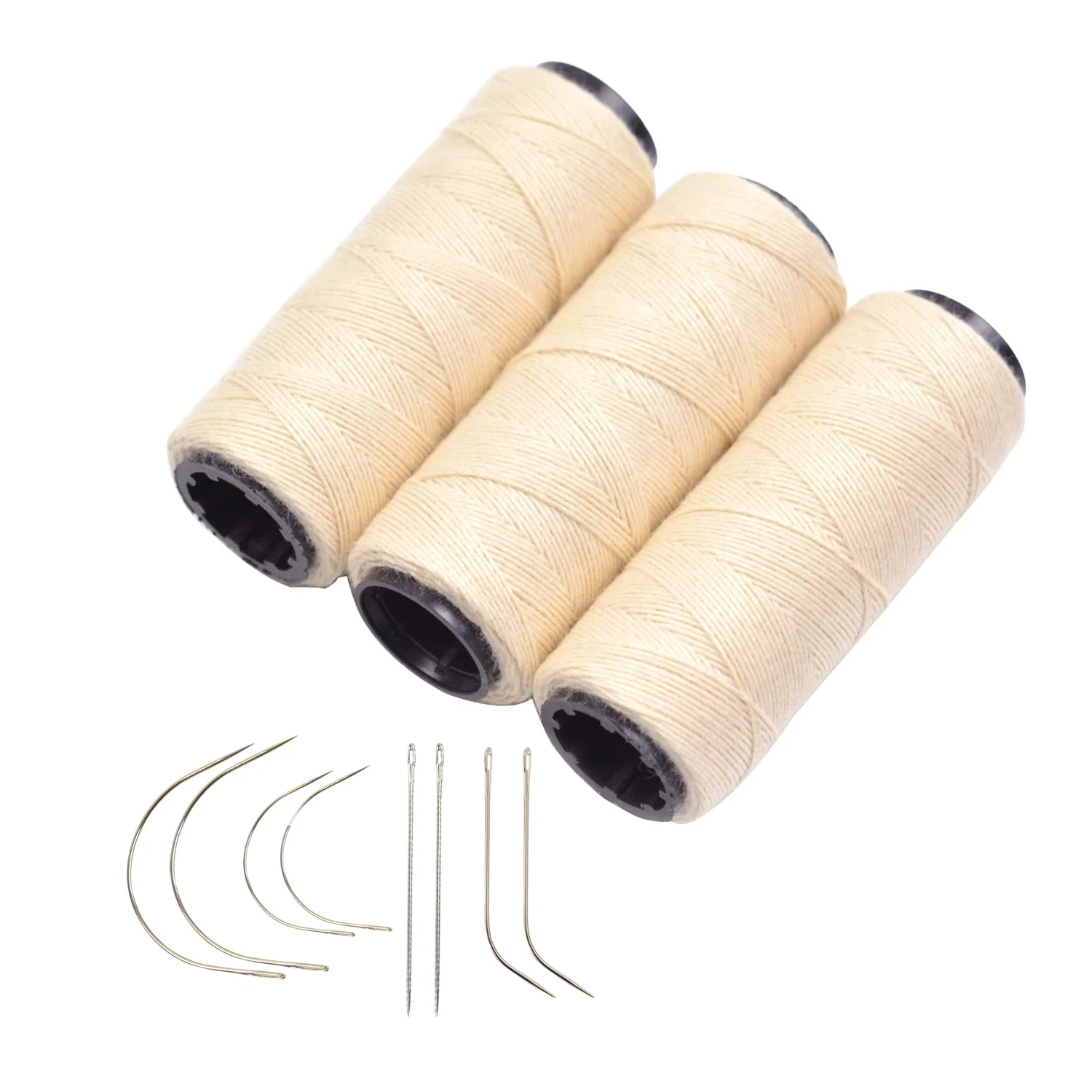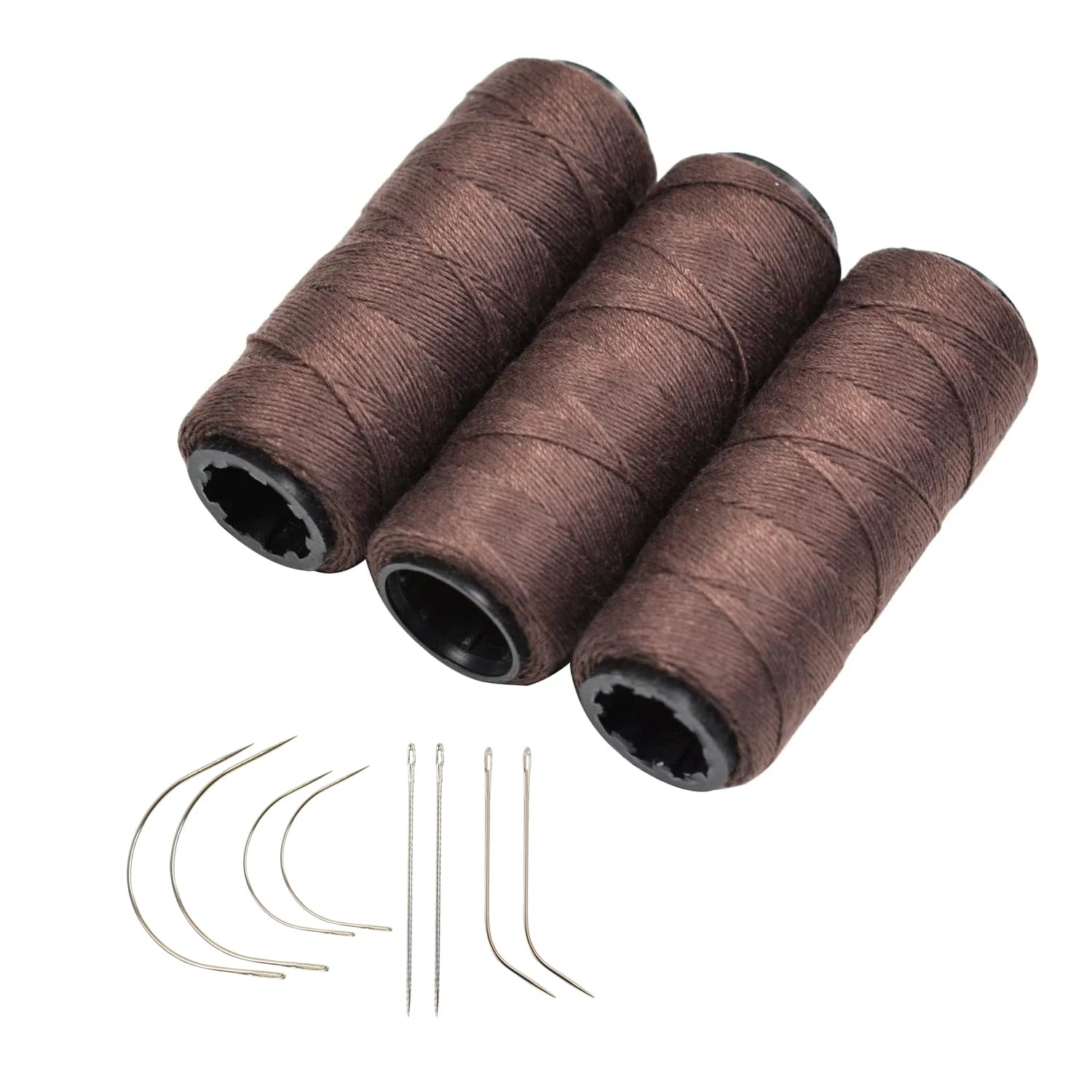 3 Rolls Hair Weaving Threads with 8 Pieces Sewing Needle Weaving Threads for Making Wigs Hand Sewing Hair Weft DIY