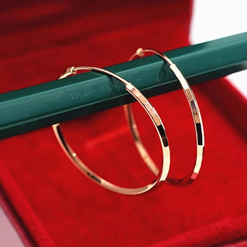 585 Purple Gold Faceted Shiny Ear Rings for Women New in Plated 14K Rose Gold Simple Earrings Classic charm Jewelry gift