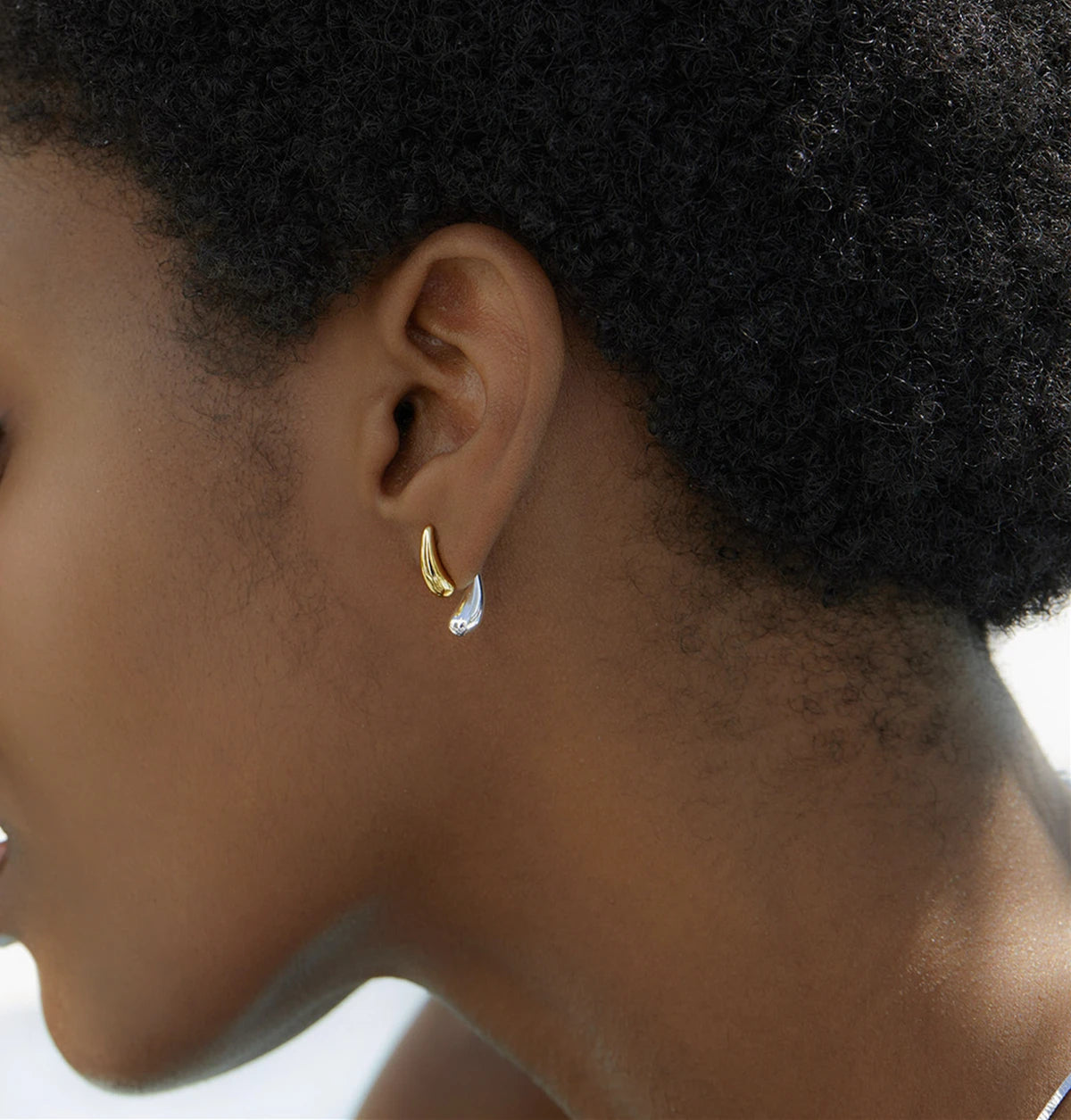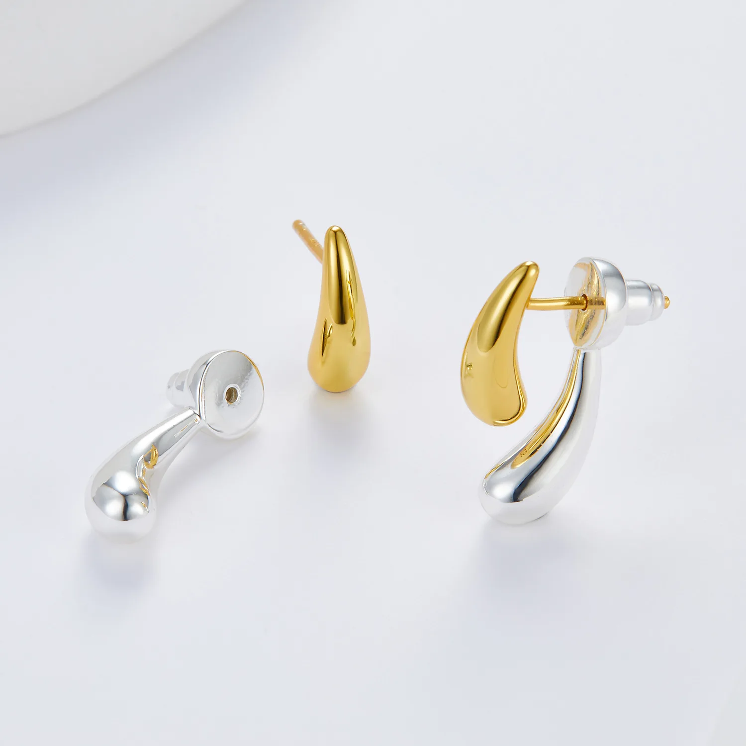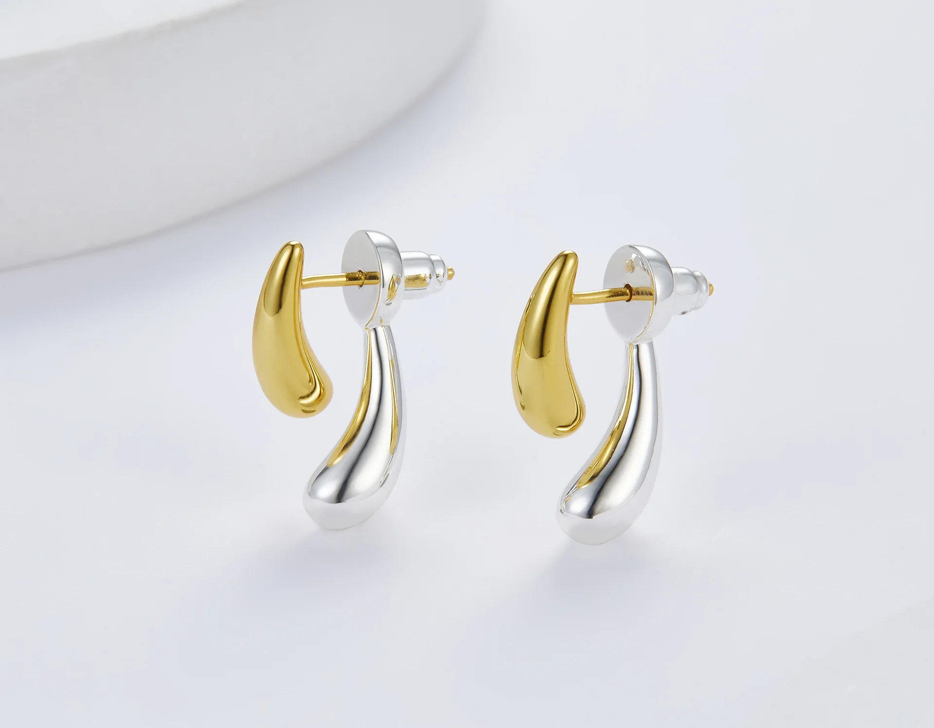 925 Silver Two Tone Plated High Polished Small Stud Earrings For Women Minimalist Trendy Statement Earring Personalized Gift