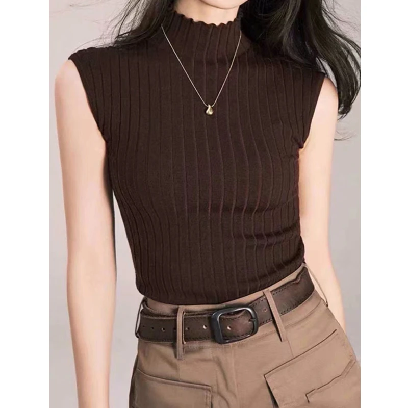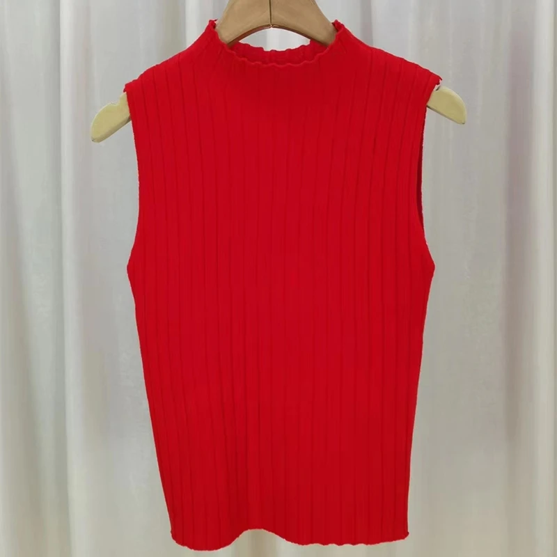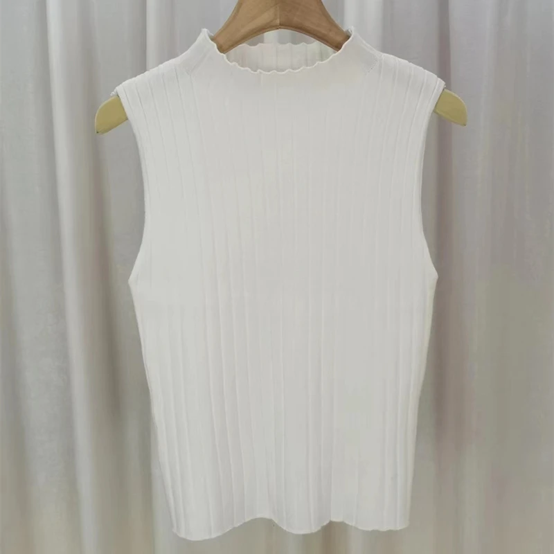Black Tank Tops Women Sleeveless Knitted T-Shirts Crop Tops Female Elastic Slim Vests Casual 2025 Summer Spring Pullover Camis