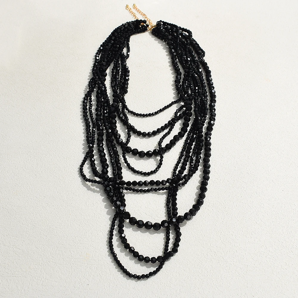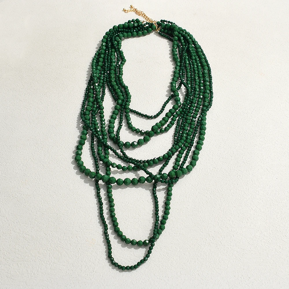 Bohemian Multi Layer Handmade Beaded Necklaces for Women Exaggerated Red Green Waterfall Beads Pendant Necklace Party Jewelry