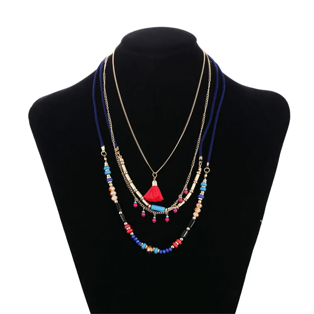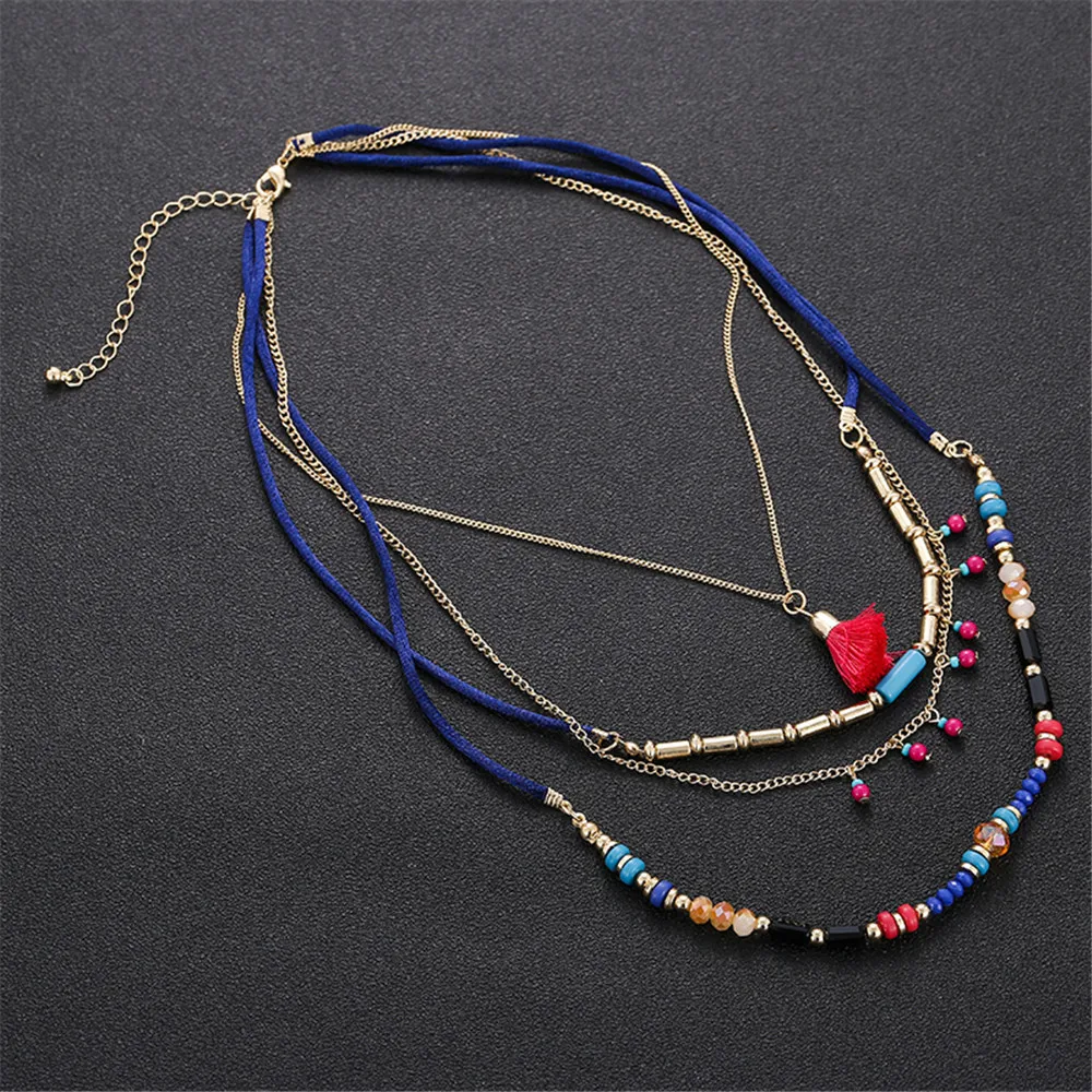 Bohemian multilayer handmade colorful beads chain pendant necklace for women girls