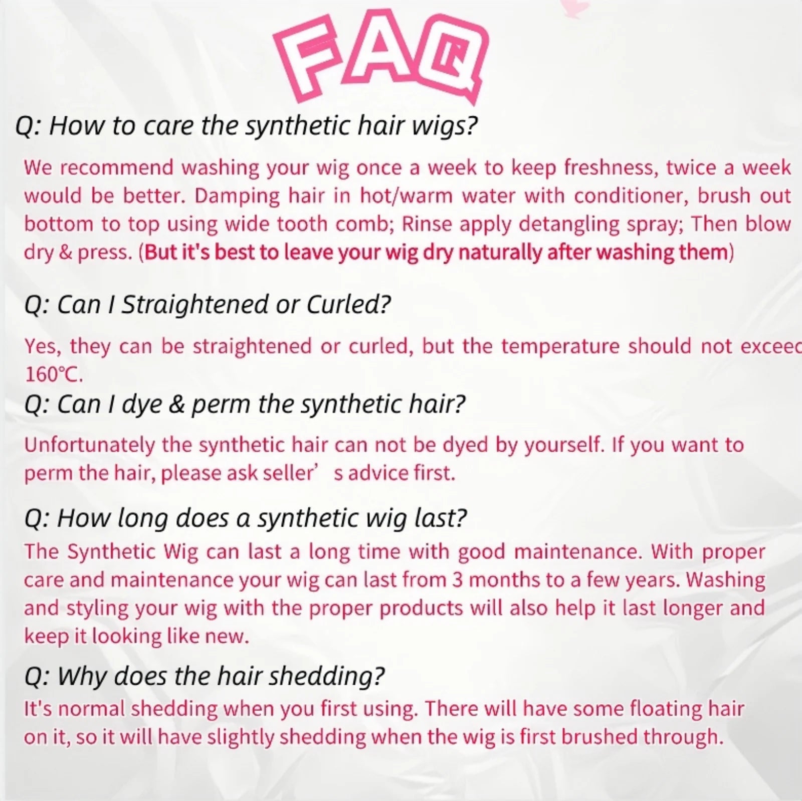 Heat Resistant 130-160°C (266-320°F) It Should Never To Be Dyed Or Bleached. You Can Use A Heating Tool To Curl Or Straighten It.