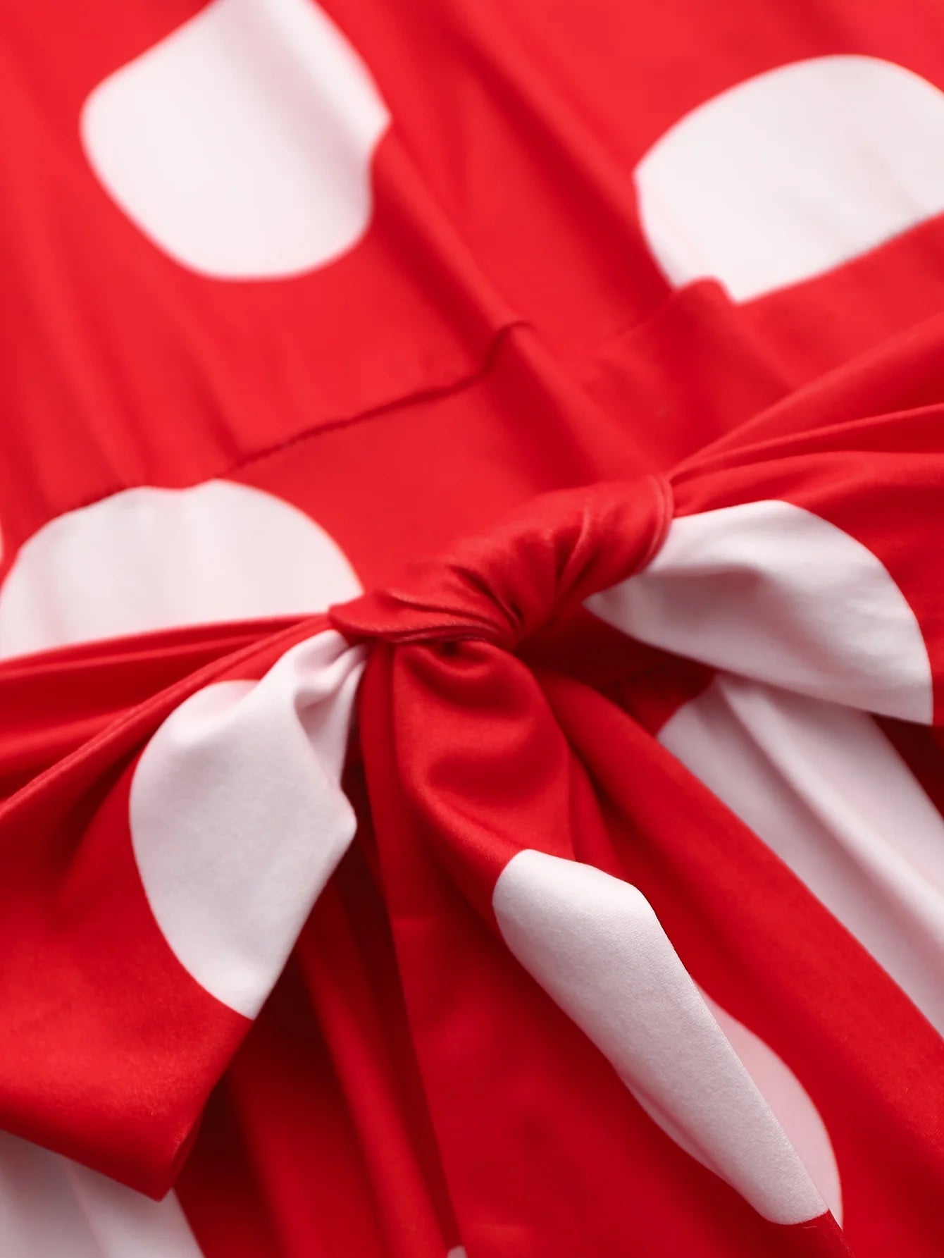 Casual Dresses Elegant Women Long Dress Sleeve Female Robe Bow Knot Polka Dots Girl's Vestidos Lady's Maxi Dresses