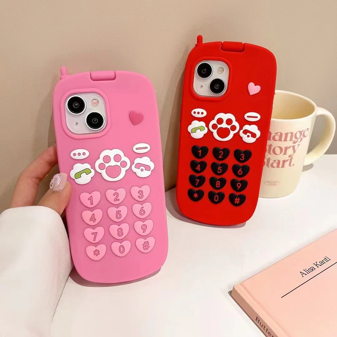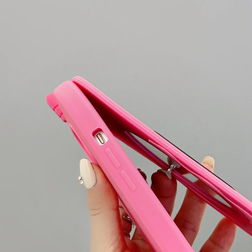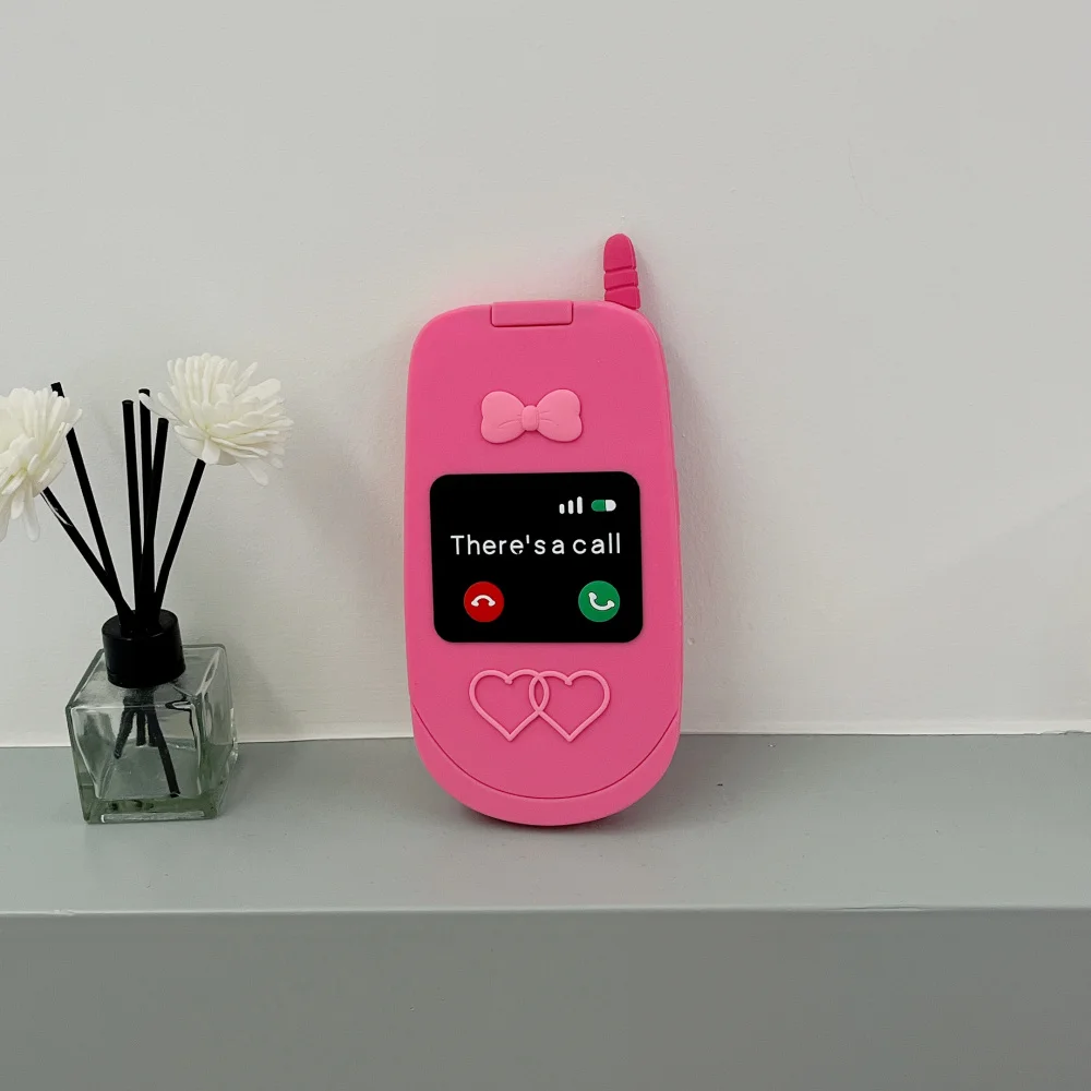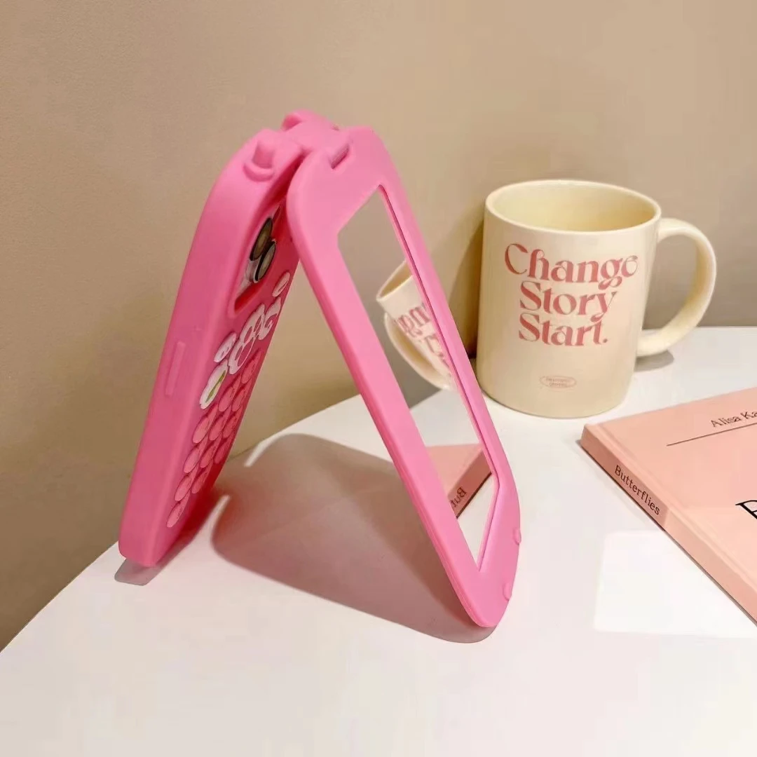 Cute 3D Hot Pink Bow Cellphone Model Flip Mirror Silicone Cases For iPhone 15 14 13 12 Pro Max 11 Shockproof Soft Cover Gifts