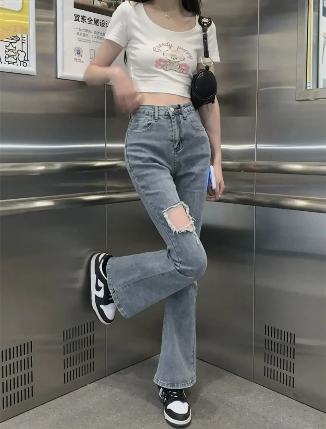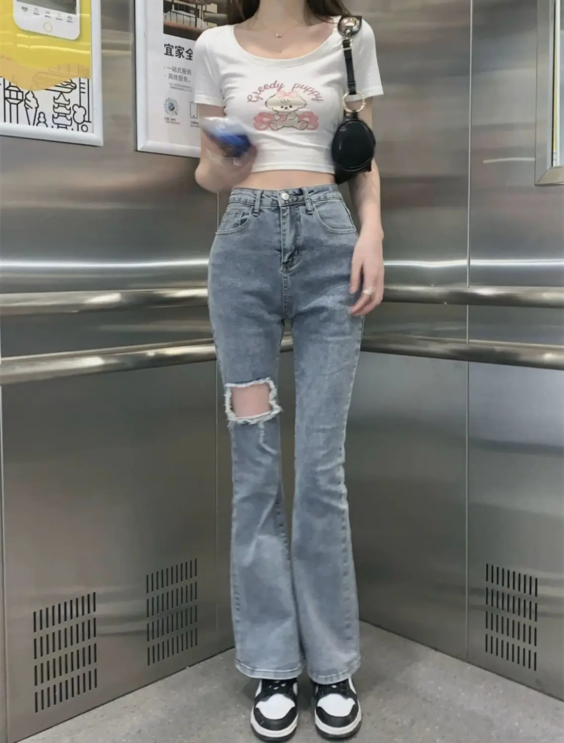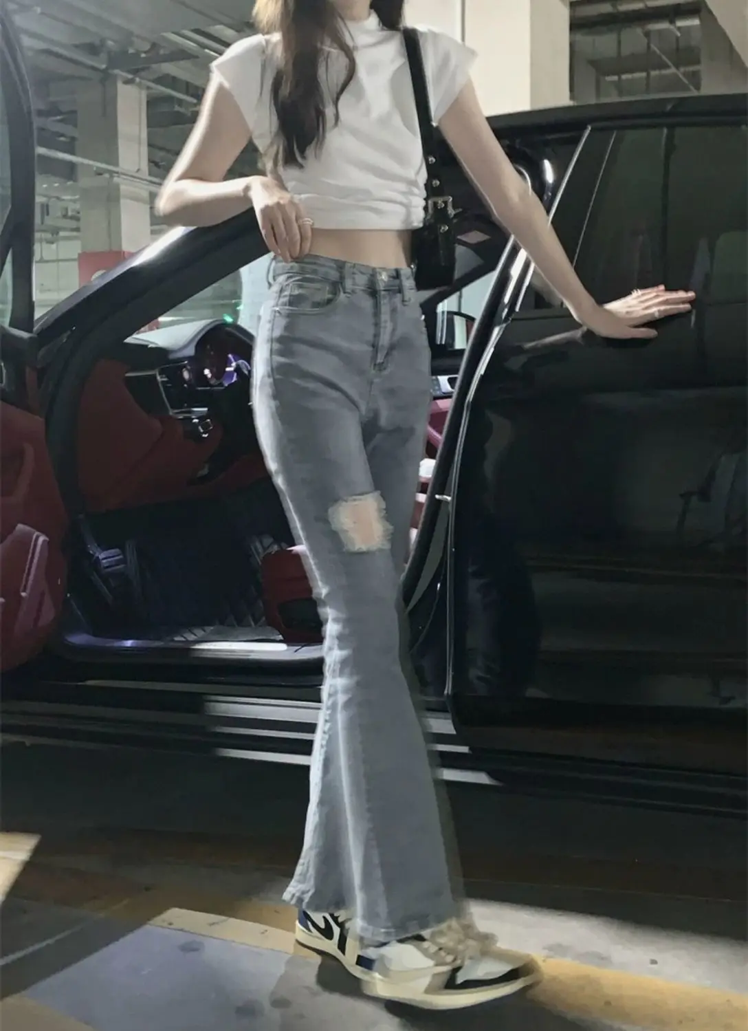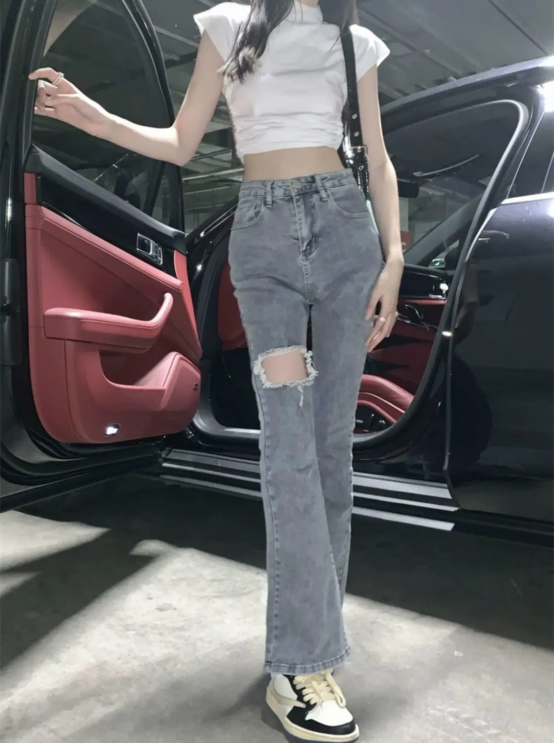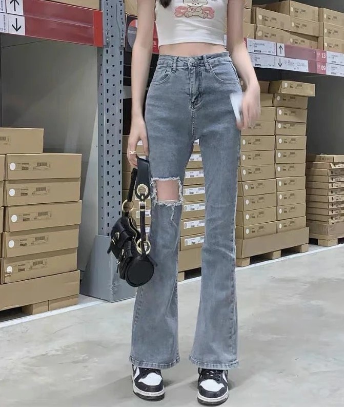 Denim Pants for Women Blue Womens Ripped Jeans Slim Fit Straight Leg Bell Bottom Trousers Original Emo Wholesale Stylish Wide A