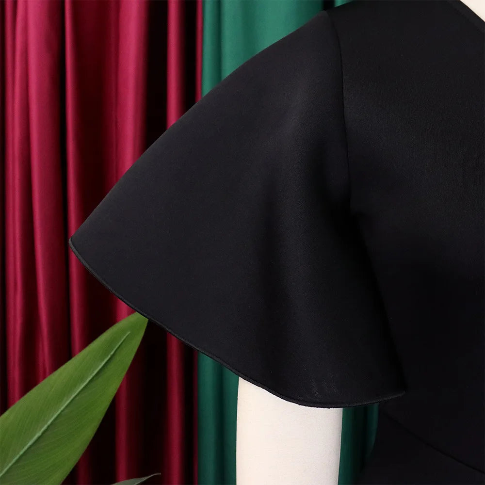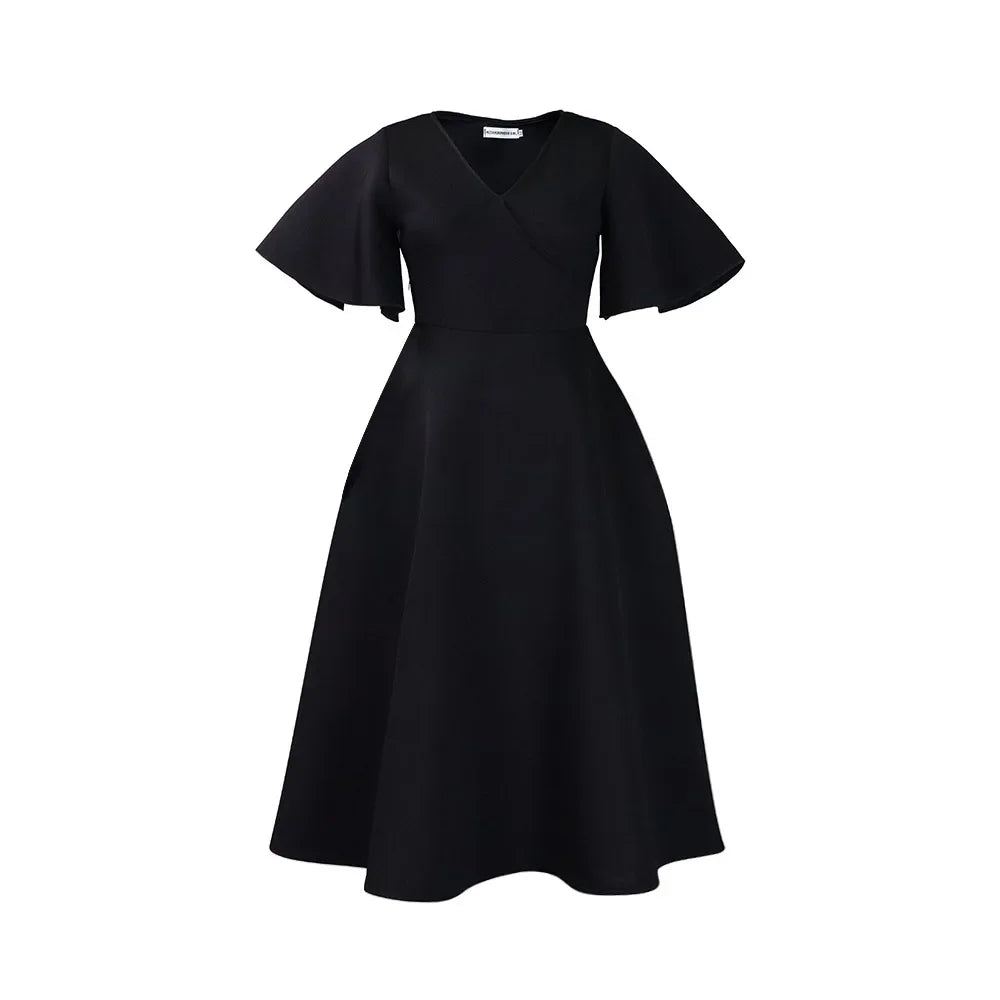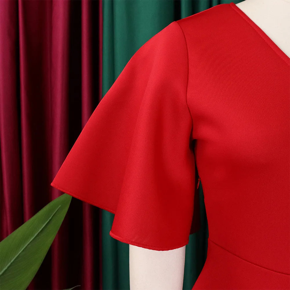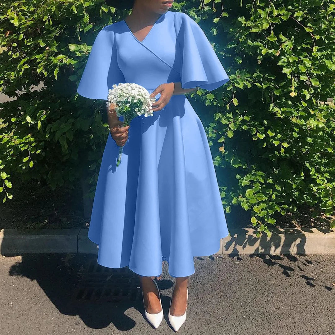 Dress Women Sexy Dresses White Round Neck Flare Sleeve Party Sheath Pleated High Waist Work Elegant Bodycon Mid Length Vestidos