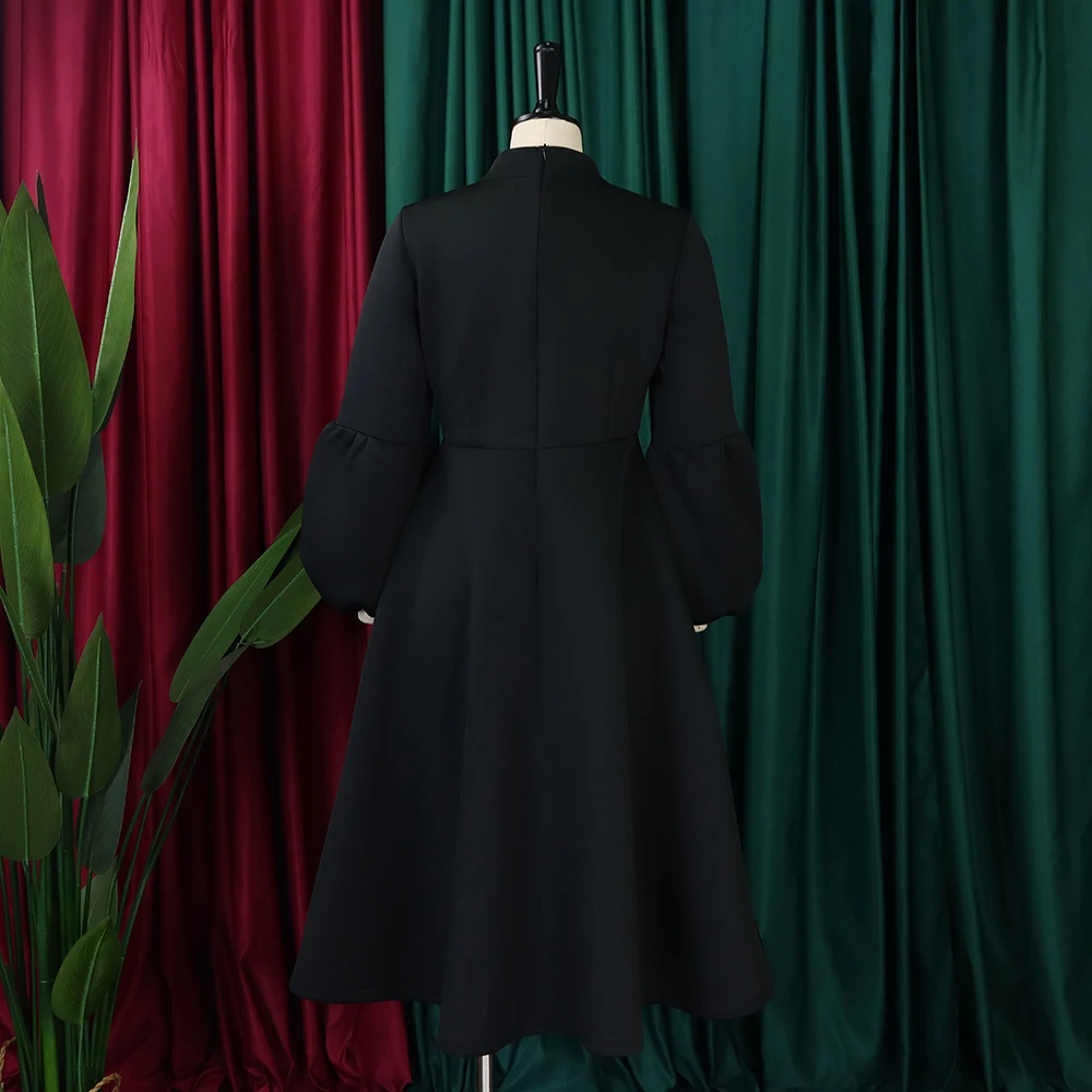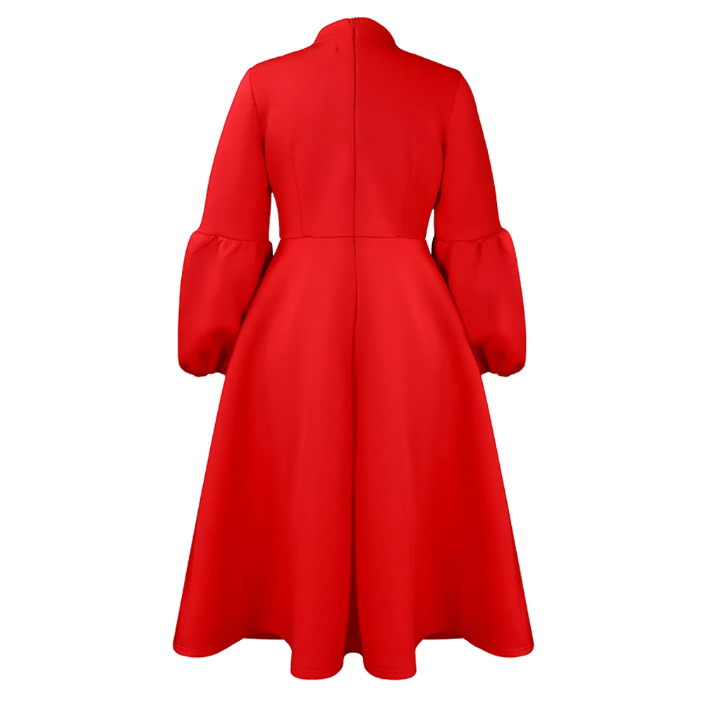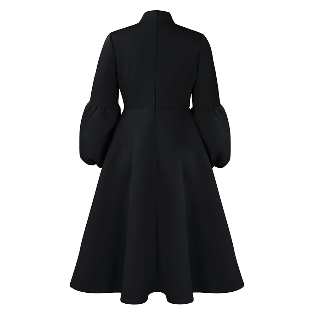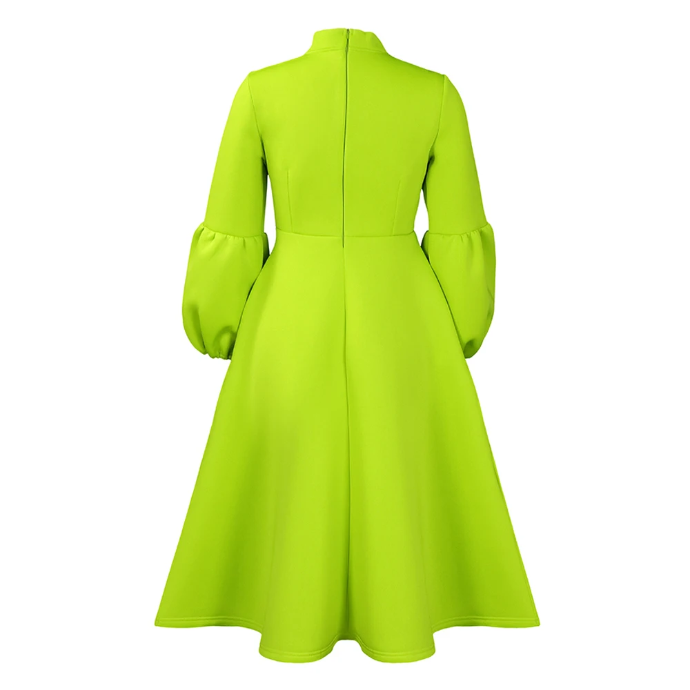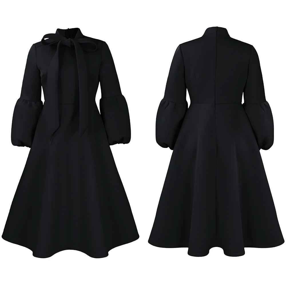 Elegant Dresses for Women Bow Collar Full Sleeve High Waisted A Line Mid Calf Luxury Female Birthday Party Dinner Vestidos Mujer